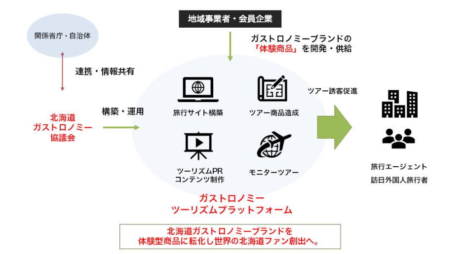 ツーリスト促進事業では、旅行サイト構築、ツアー商品造成、ツーリズムPRコンテンツ制作、モニターツアーなどを主に行い、北海道ガストロノミーブランドを体験型商品に転化し、世界の北海道ファンを創出することに貢献します。